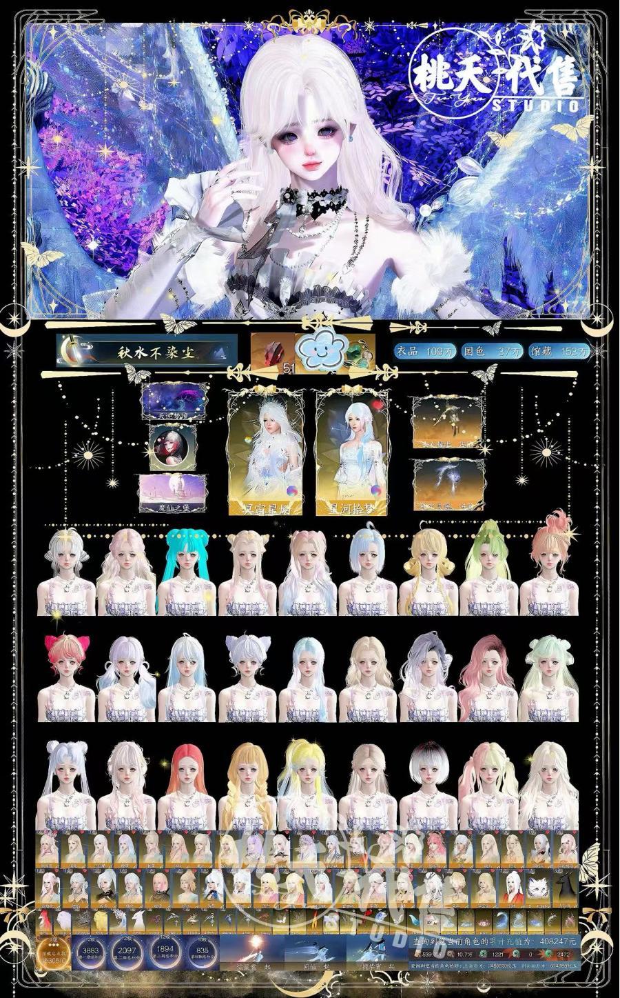 【Taoyao2442】秋水不染尘丨冥宙星熠丨星河拾梦丨S1S2橙武丨狮子车丨26自染丨220天赏丨12转盘丨九灵✅价格:69999可刀可分期✅战力:152.2