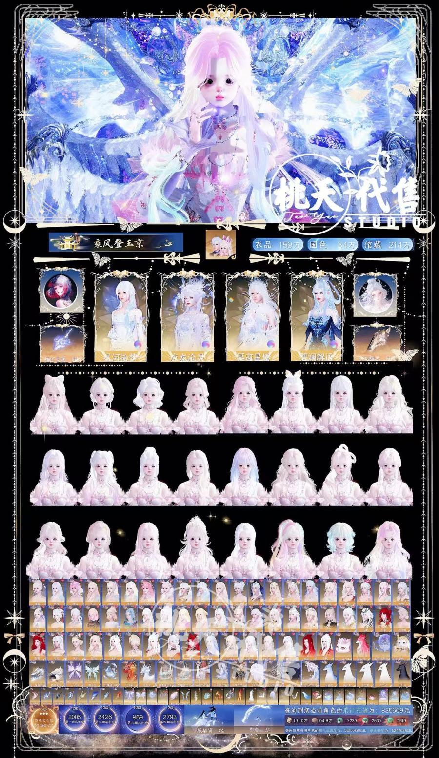 【Taoyao2435】飘渺云流鹤上仙丨琼华玉凰·极丨星河拾梦丨S1S2橙武丨狮子车丨16自染丨572天赏丨7转盘丨九灵✅价格:158000可刀可分期✅战力: