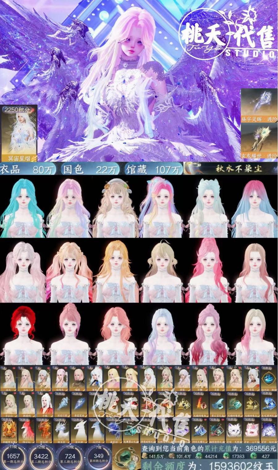 【Taoyao2442】【烟雨江南】星河+天使+S1S2橙武+狮子车+26自染+未用+仙逆/魔仙堡联动主页【Taoyao2442】秋水不染尘丨冥宙星熠丨星河拾梦丨S1S2橙武丨狮子车丨26自染丨220天赏丨12转盘丨九灵✅价格:69999可刀可分期✅战力:152.2区服类型: 逆水寒手游 /选择大区 /忆江南 /烟雨江南 |